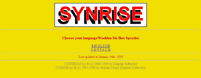 Wie Sie oben sehen, unterteilt sich Synrise in insgesamt vier Teile. Der eher nur noch historisch interessante Teil ist Synrise, wie es 1998 erstmals online ging: