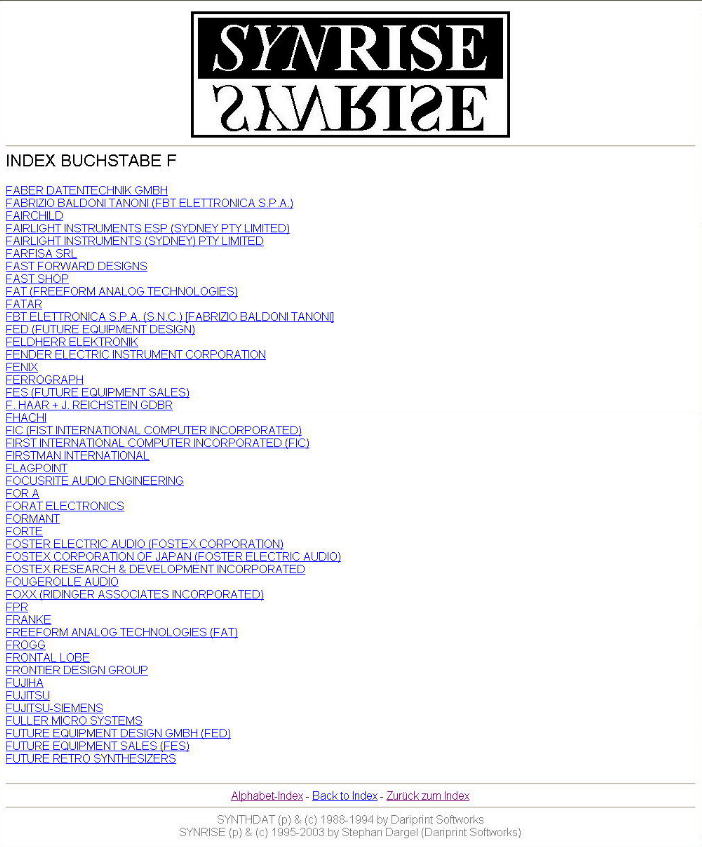 Klickt man nun auf einen Buchstaben-Index - hier zum Beispiel Buchstabe F - dann erscheinen noch weitaus mehr Firmen, als in der Grobüberischt: